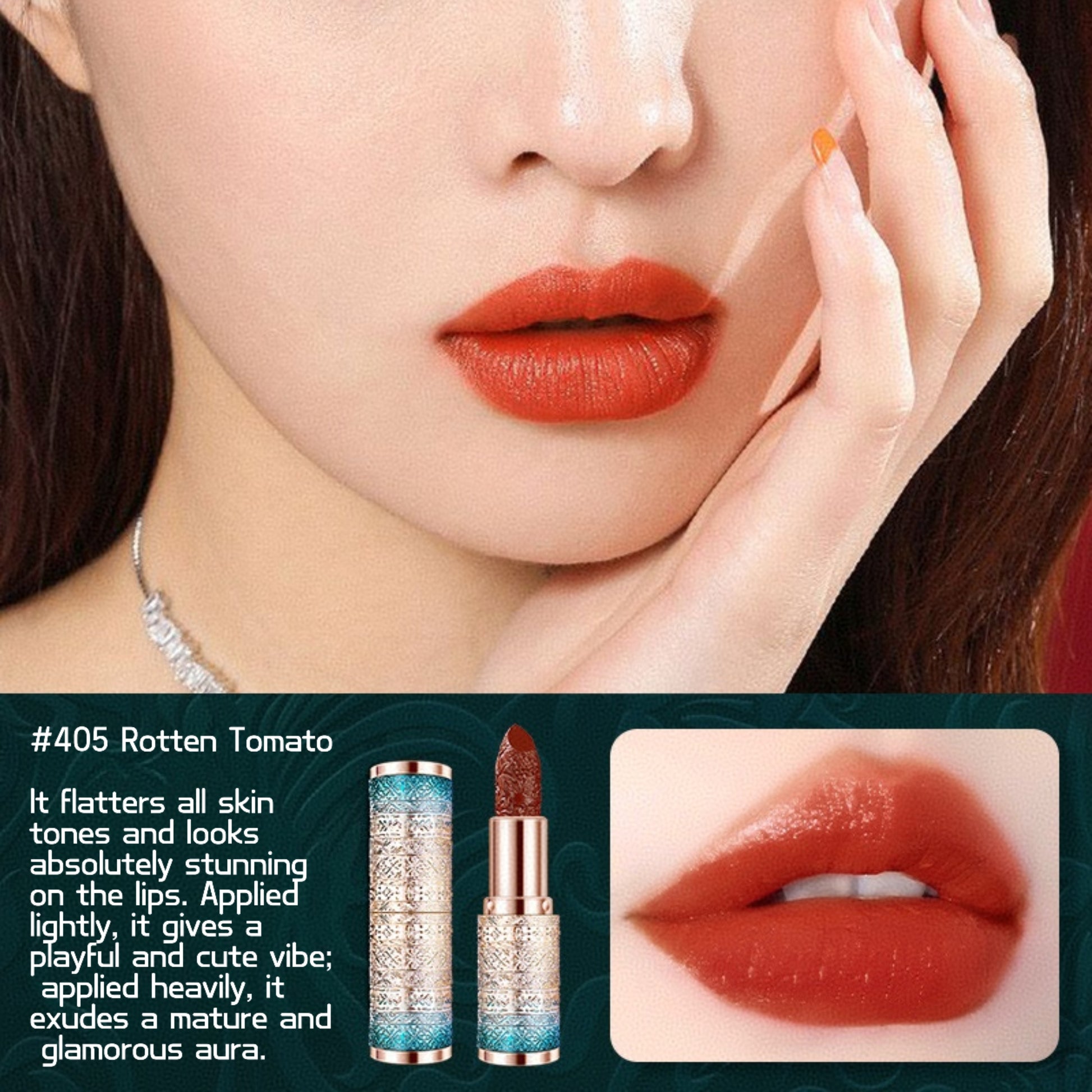 First up, #405 Rotten Tomato π β this shade is a total game-changer! It complements EVERY skin tone and looks absolutely stunning. Go for a light swipe for a cute, playful vibe, or layer it up for a glam, sophisticated look. β¨